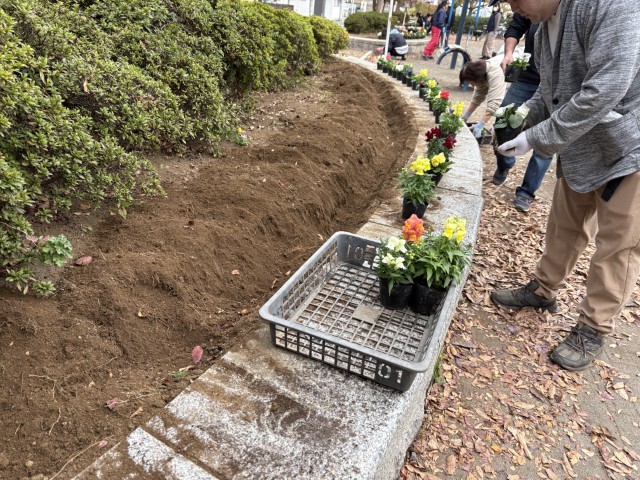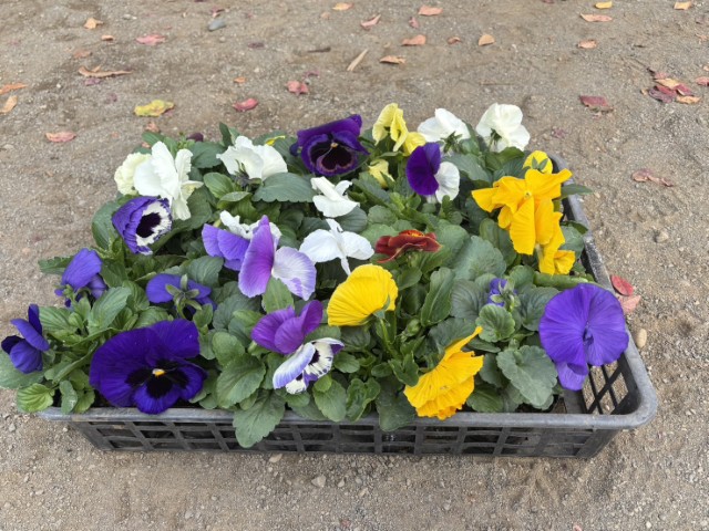 今回植えた花は、パンジー90株、キンギョソウ30株、の合計120株です。