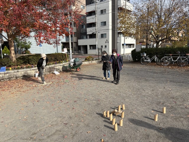植栽ボランティアの終了後、モルックをやりながら町内会員同士のコミュニケーションを楽しめました。