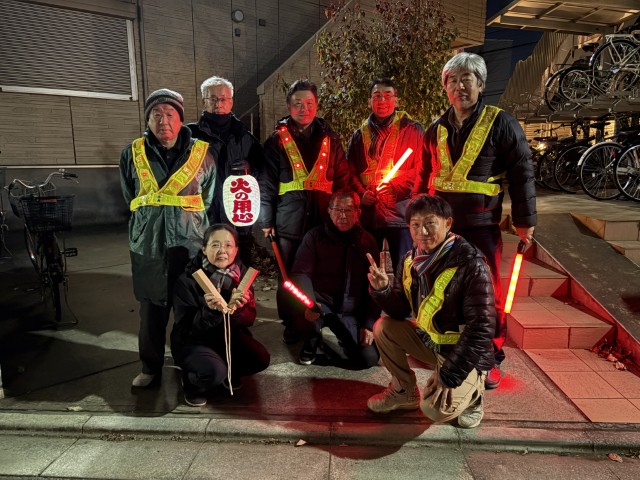 このうちの18時からの回は、昨年から導入された「小学生参加可」の時間帯としてパトロールが実施され、元気な「火の用心!」の声が町内に響きました。地域の防災活動を次世代へつなぐ、意義ある取り組みとなりました。